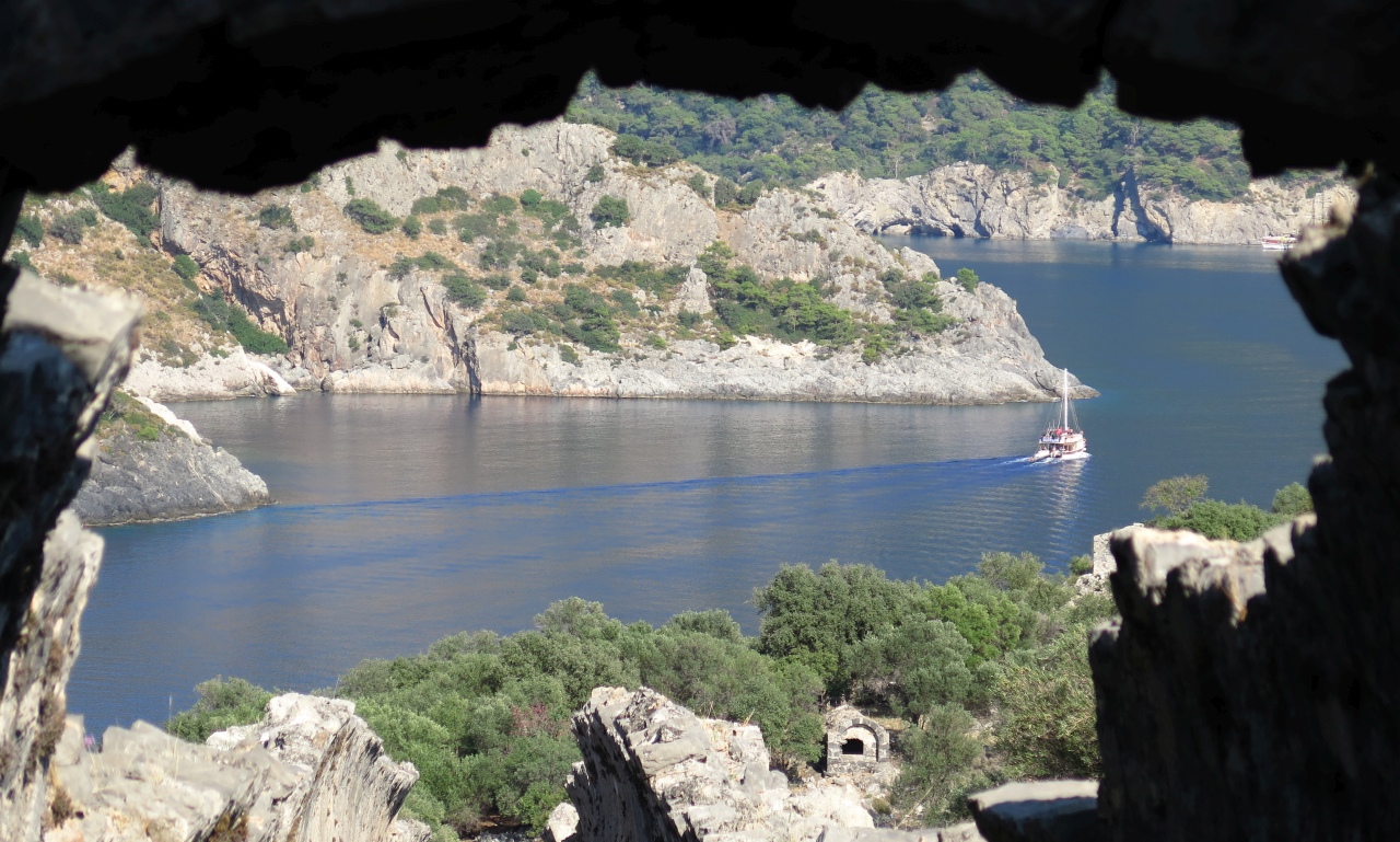 baia di Gemiler (dove eravamo passati in barca) attraverso le rovine