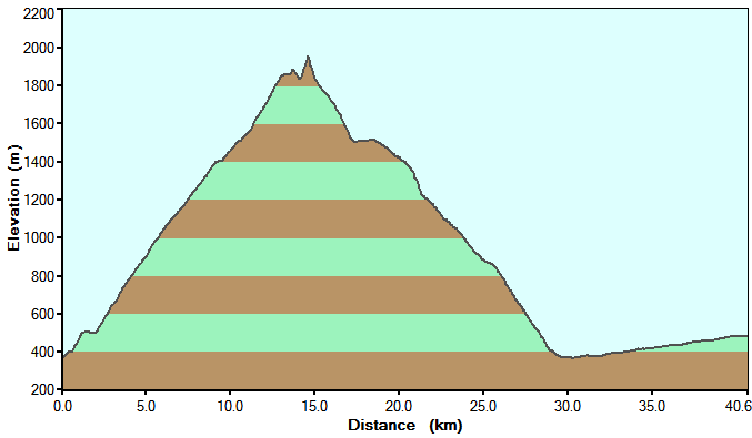 12-15%, ma anche due strappi ripidi fino al 25%. Oltre quota 1000m la strada