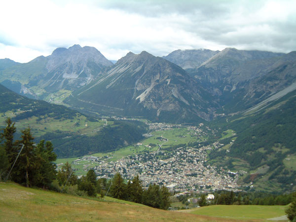 S.Lucia; quindi a sud per la ciclabile a prendere la salita per Bormio