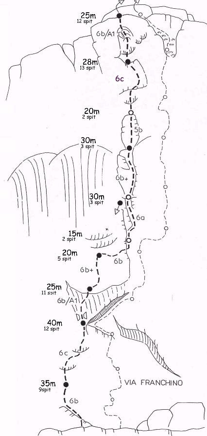 qualche spit del terzo tiro, molto strapiombante, per non ritrovarsi a