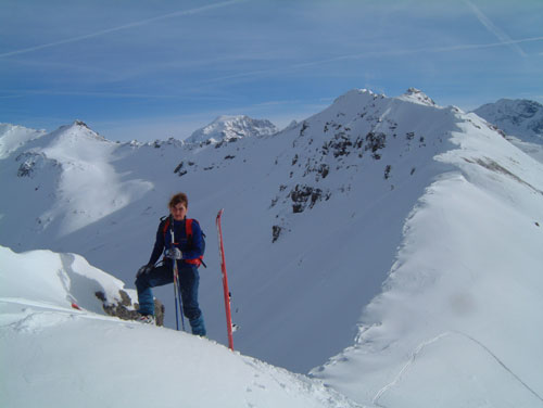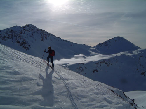 della Punta di Rims e brevemente in cresta con gli sci fino in cima.