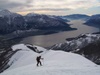 scesi per il canale sul versante est, in neve fresca su pendenza