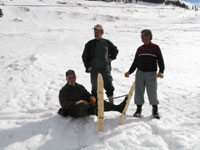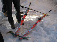 la nostra partenza, uno di loro calza un paio di sci con enormi scarponi